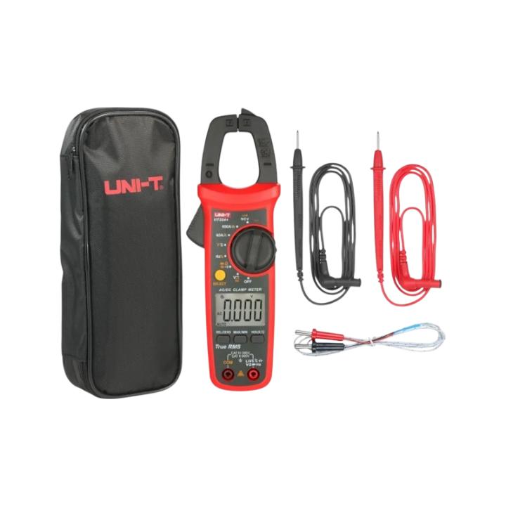 The UNI-T UT204+ is a professional True RMS clamp meter designed to measure AC/DC current up to 600A, voltage, resistance, capacitance, frequency, and temperature. It’s widely used by electricians, engineers, and technicians for troubleshooting electrical systems.